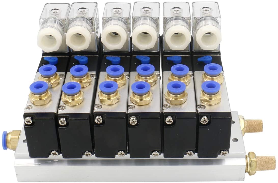 Heschen 6 Space Pneumatic Solenoid Valve 4V210-08 DC12V/DC24V/AC110V/AC220V PT1/4 5 Way 2 Position Manifold Base Muffler Quick Fittings Set